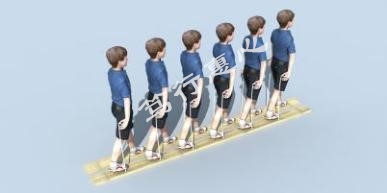 器材使用方法:每隊(duì)成員的每一個(gè)人的兩只腳分別的站立在兩個(gè)電車之上,雙手分別拉住提手,步伐一致,整體一起往前走。