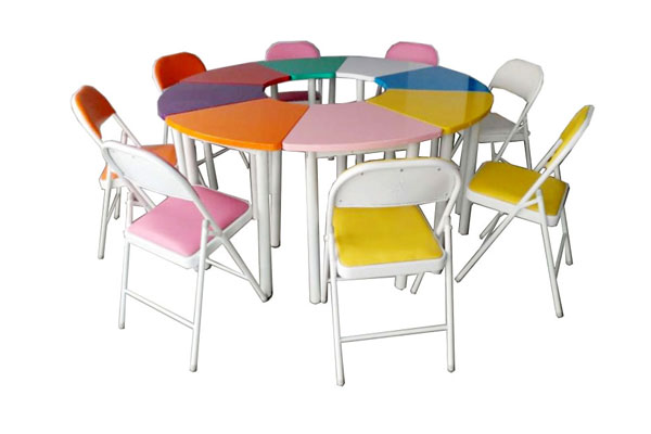 8人版團體活動桌椅:專用扇形桌8張,8種顏色,8把椅子。